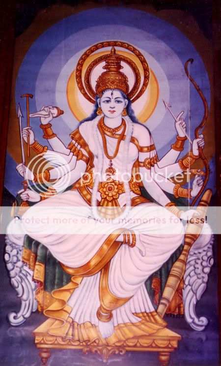 ตามที่คุณ ARTICLE และ คุณ กาลิทัส โพสรูป นั้น คือ รูปพระสรัสวตี ที่แสดงถึงพลังอำนาจทางออกรบครับ จะเรียกได้ว่า เป็น วีระ สรัสวตี เทวี จะให้ได้ว่าในภาพนี้ พระสรัสวตี จะไม่ทรงถือ วีณา หรือ พิณ โดยทั่วไปแล้วจะถูกบูชา ในเทศกาล นวราตรี ครับ